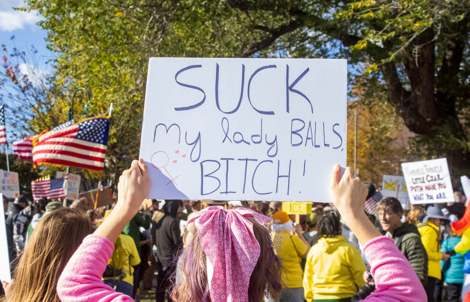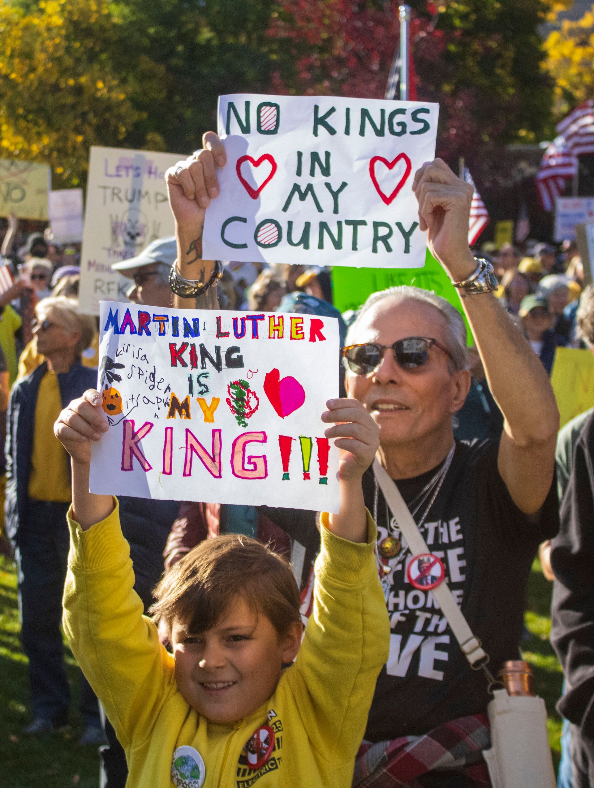 “It means no dictatorship, USA we were founded under the people so when Trump is acting like a dictator this is us protesting that,” she said.