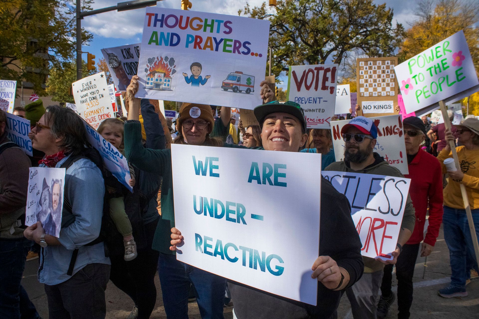 Many brought homemade signs and waved American flags. It was a windy October day and the breeze swept through downtown Fort Collins. But, the mood was lively and protesters were determined.