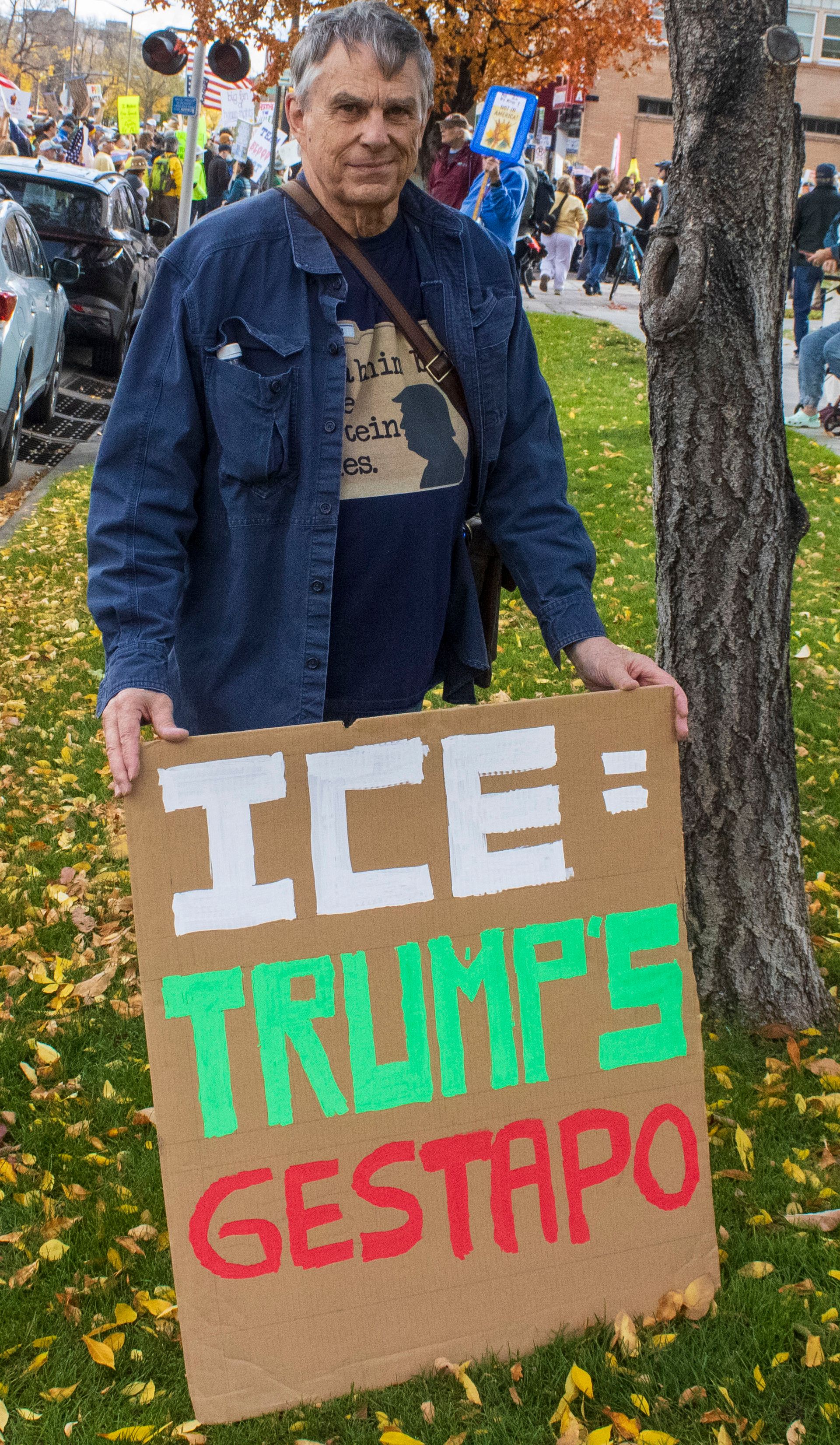 Dave Winnemann, a Fort Collins resident, carried a bold red-and-white sign.